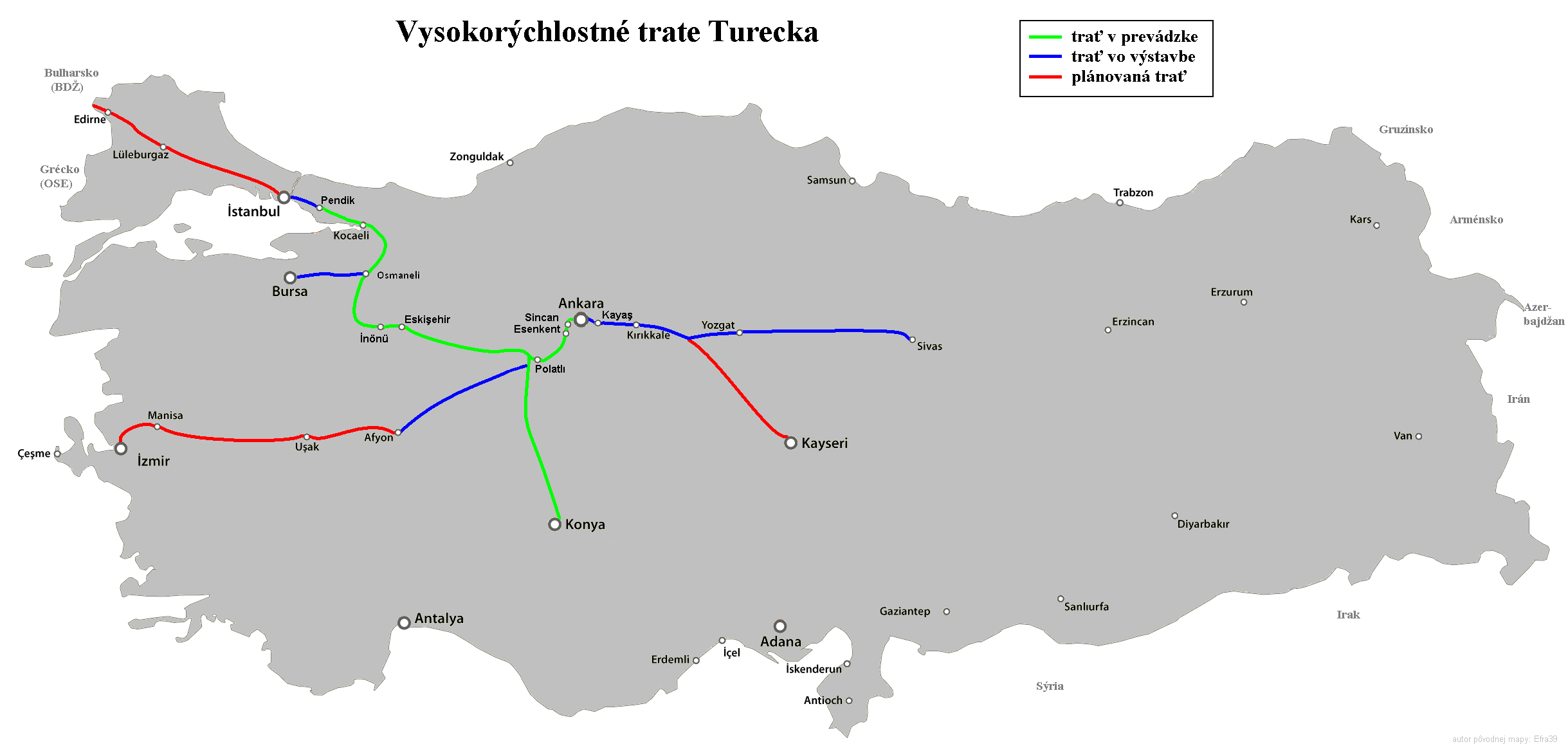 | V Turecku je od r. 2003 budovaná sieť vysokorýchlostných tratí pre prevádzku rýchlosťou 250 km: | Testovanie trate zo