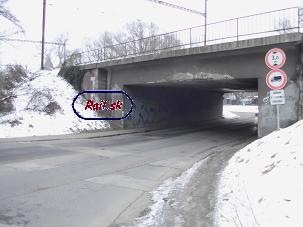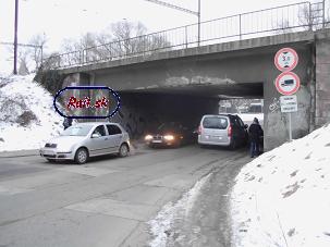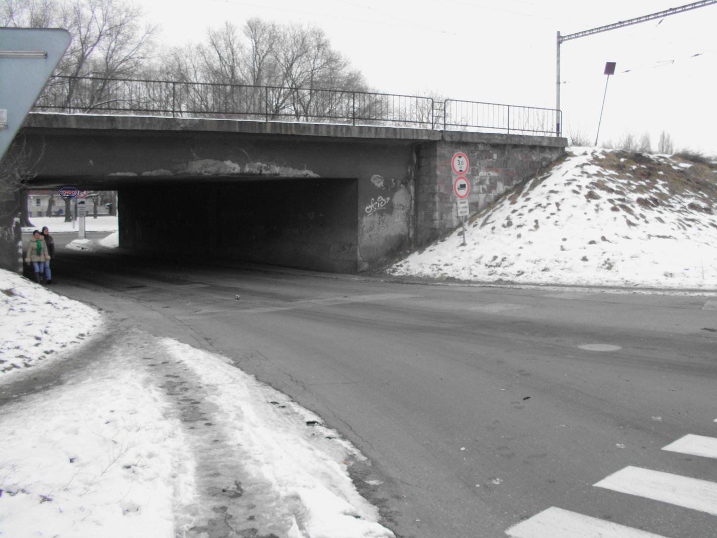 210 m západne podjazd trate s 2 chodníkmi 1 m širokými (mapa