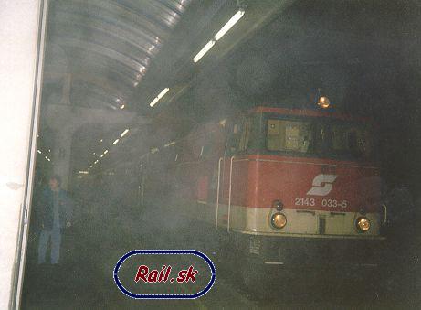 pripravený na odchod ÖBB 2143 033-5 loco at head of first fast train after 2nd World War from station Bratislava-Petržalka to station Wien Südbahnhof © Addams (7. I. 1999/5:36 hod./hr. ) |