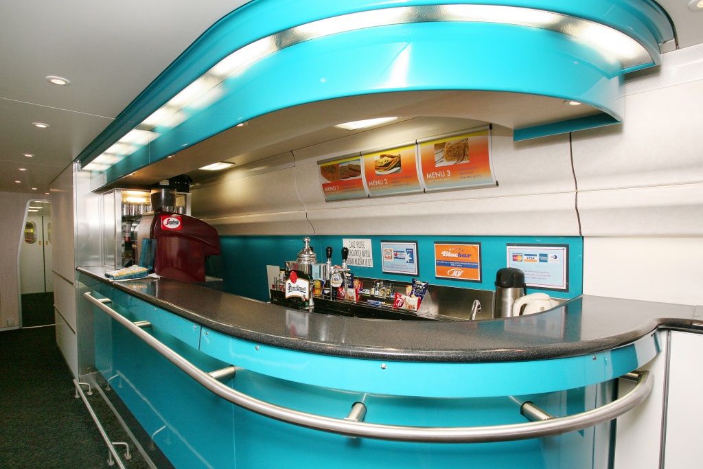 Bistrooddíl s barem už není stylizován v tradiční zelené barvě, ale dostal nové obložení.