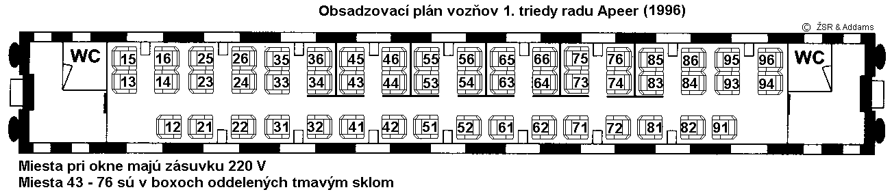 Obsadzovací plán vozňov 1. triedy radu Apeer - 2000