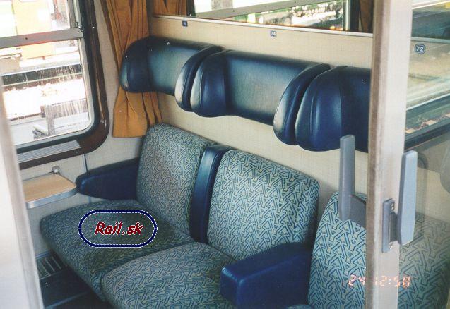 interiér vozňa ÖBB radu Bmz - sedadlá v "koncovej"