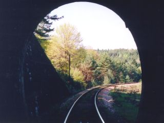 | Vstup trate do tunela, foto Emil Schenk, 29.4.2001 |