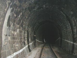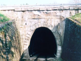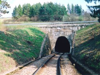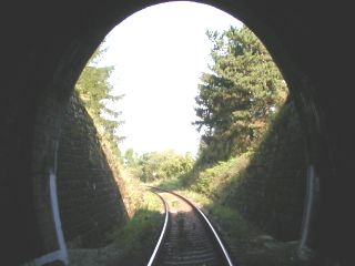 | Vstup trate do tunela, foto Emil Schenk, 29.4.2001 |