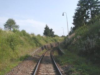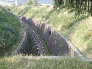 | Začiatok tunelového zárezu, km 0,65, foto Emil Schenk, 1.9.2002 |