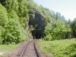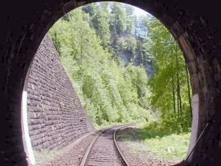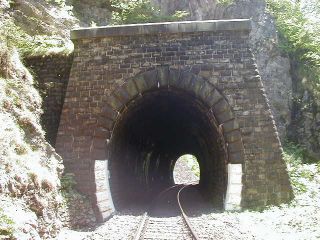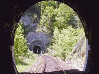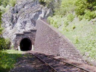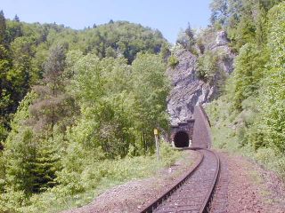 | Vstup trate do tunela, foto Miroslav Kožuch, 24.5.2003 | Portál tunela, foto Miroslav Kožuch, 24.5.2003 |