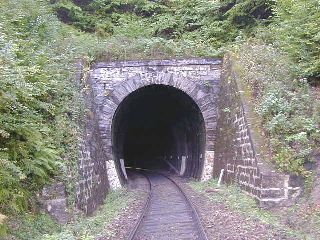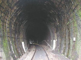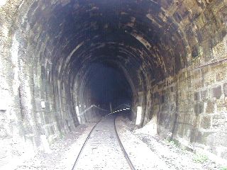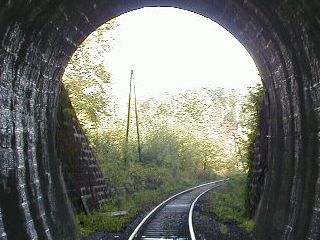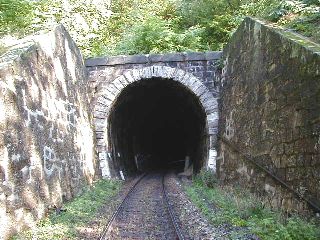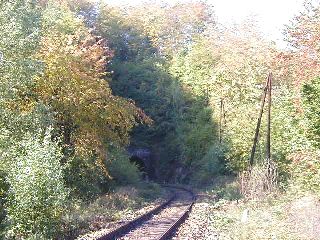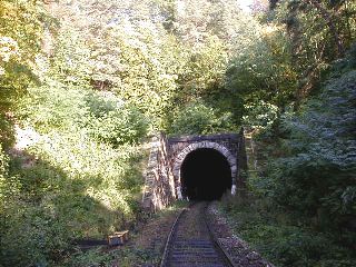 | Vstup trate do tunela, foto Emil Schenk, 29.9.2001 | Portál tunela, foto Emil Schenk, 29.9.2001 |