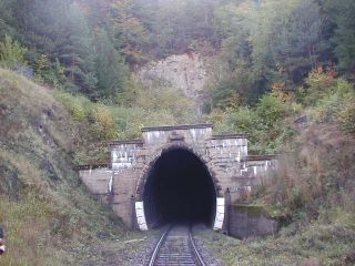 | Portál tunela, foto Emil Schenk, 14.10.2001 | Predĺžený portál, foto Emil Schenk, 14.10.2001 |